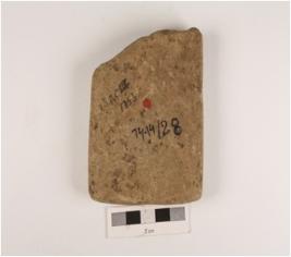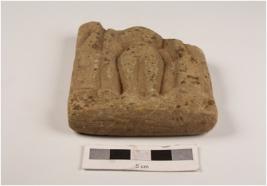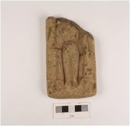 | Description / विवरण | Fragment of stone plaque with standing female figurine, cruded, missing head, broken breast. |