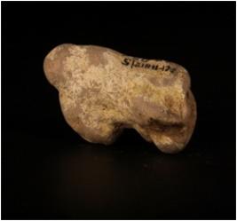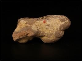 | Description / विवरण | Terracotta female figurine, wearing decorative necklece, prominent headdress, intact breasts, facial features are lacking and surface treated with buff wash. |