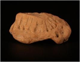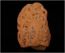 | Description / विवरण | Terracotta head of a human figurine, one right ear is intact, and other features are lacking. |
