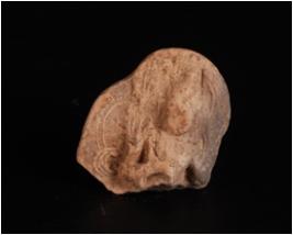 | Description / विवरण | Fragment of mould made clay plaque, figure of diety dipicting on obverse side, features are not clear, drappery arm are visible, decorated surface. |
