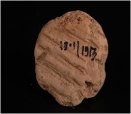 | Description / विवरण | Fragment of mould made clay plaque. Standing future is slightly visible, cruded. |