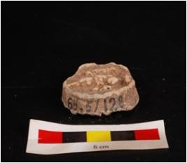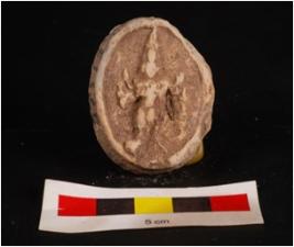 | Description / विवरण | Mould made, sun baked clay plaque with standing deity, figure are slightly broken, circular in shape and edges are broken. |