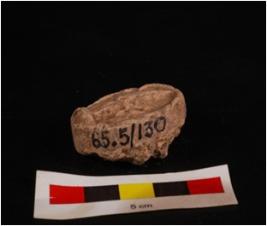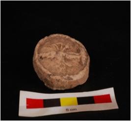 | Description / विवरण | Mould made, sun dried clay plaque with standing human figure, six arms are visible, circular in shape and wash is given on surface, mat impression on back side. |