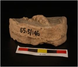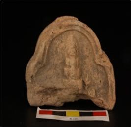 | Description / विवरण | Fragment of moulded terracotta plaque. Jewelled crown is visible. Holding flower in hand. |