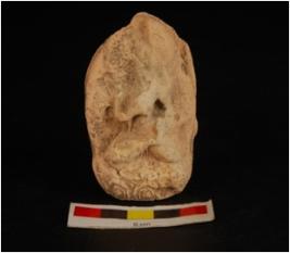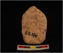 | Description / विवरण | Moulded plaque with seated buddha, right side above the arm and part of head is broken, left hand holding an object rest on lap, right hand near chest, seated on lotus throne. |