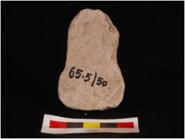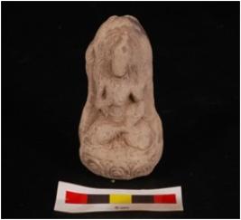 | Description / विवरण | Moulded plaque, depicting seated buddha in padmasana on a lotus throne, designed by incised lines, head tilted towards left, face & jata is not clear, right hand kept on chest, left hand kept on thigh, mudra & lotus is not clear, linear designed creeper is visible. |