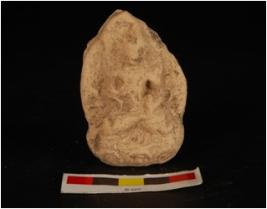 | Description / विवरण | Moulded on plaque, figure of deity is dipicting in seated posture on aasana, aasana is decorated with lotus petals design. |