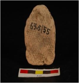 | Description / विवरण | Moulded plaque, seated deity on aasana features are not clear, decoration is not visible and mat impression on reverse side. |