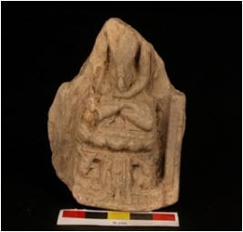 | Description / विवरण | Deity seated in padmasana on lotus, position of left hand shows that the image is of buddha and right leg is eroded. |