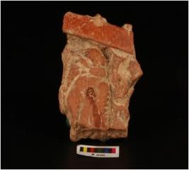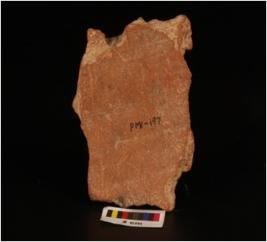 | Description / विवरण | Fragment of a plaque depicting elephant head, broken from the mouth and neck and surface treated with red slip. |