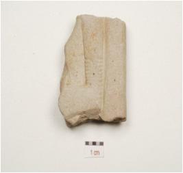 | Description / विवरण | Fragment of plaque depicting probably leg wearing anklet indicated by incised lines, feet turned towards right and fingers marked by incised lines, |