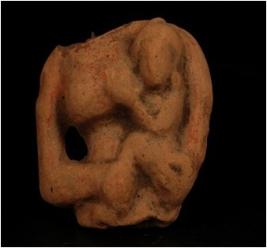 | Description / विवरण | Terracotta fragment of female figurine holding child in left fixed arm. Well baked, made with well levigated clay. Red in colour. The child touching her breast with left hand suspension hole in right hand side. |