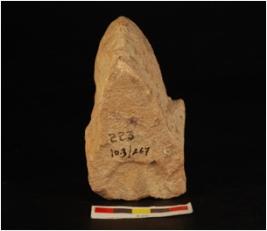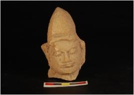 | Description / विवरण | Stone plaque human head, prominent headdress, features are carved carefully, closed eyes are dipicting dhyanmudra posture, rough surface with slightly stains. Buff in colour. |
