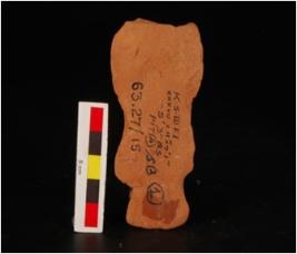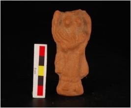 | Description / विवरण | Terracotta headless female figurine on plaque in standing position, round breast, holding a baby with her two hands. Hand, legs and head of the baby is visible and a long dress up to her ankles of leg is visible. |