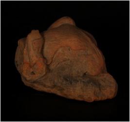 | Description / विवरण | Handmade, terracotta plaque of human bust, made with well levigated clay, left arm is missing, right hand intacted, wearing necklace, left hand is holding part of drappery and suggested by incised lines, wash treatment is given in red colour. |
