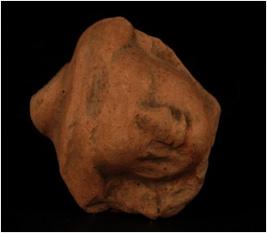 | Description / विवरण | Handmade terracotta human head, features are not clear, wearing head-dress, nose is visible, made from well levigated clay, wash treatment is given in red colour. |