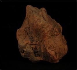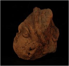 | Description / विवरण | Handmade terracotta fragmentery of female head, prominent nose, pierced nostrils, thick upper lip, round palleted eyes and eyeballs are suggested by pin hole, dow on forehead. |