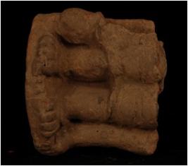 | Description / विवरण | Handmade terracotta plaque fragmentary human standing figurine on pedestal, portion above the knees is missing, prominent legs and wearing anklets. Fingers are suggested by grooved lines. |