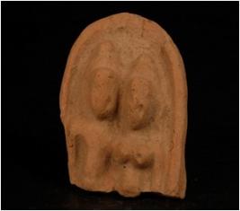 | Description / विवरण | A plaque of terracotta depicting satti salla couple in standing pose. The figures indicate elaborate decoration on the head the lower portion below the waist is missing and wash treatment in red colour. |
