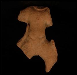 | Description / विवरण | Terracotta plaqued torso of human figurine, seated posture, arms and legs are broken, wearing gridle with knot and wash treatment is given in red colour. |