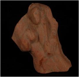 | Description / विवरण | Terracotta fragment of female firugine holding child in her left arm. Made with well baked clay, red in colour, the prominent breasts have depressions to mark the nipples. Face of child is intact. |