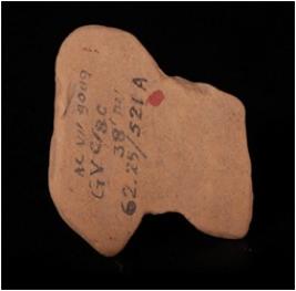 | Description / विवरण | Terracotta fragment of female bust made with well lavigated clay, buff in colour. Breasts and arm is intact. Head and half legs are missing. Plaque object. |