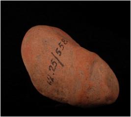 | Description / विवरण | Terracotta fragment of male head, made with well lavigated clay. Red in colour, pinched work on face feachers. Lower part of body is missing. Pin size holes on head. Plain hair dress, face is intact. |