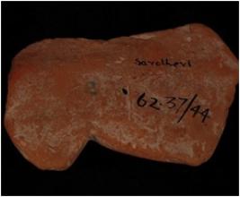 | Description / विवरण | A terracotta torso on plaque wearing nacklace and drappery falling from shoulder to waist and lower garment shown with multiple folds. |