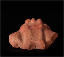 | Description / विवरण | Handmade terracotta plaque human torso of female figurine,circular breast, left hand resting on thigh. Fingers are suggested by incised lines and right hand resting on left breast. Surface is treated with red slip. |