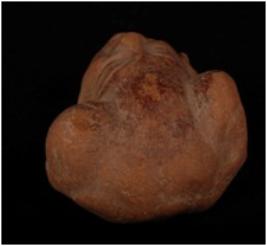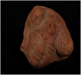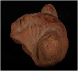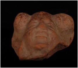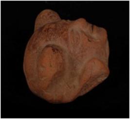 | Description / विवरण | A terracotta human head hair shown in sides bosses near the forehead, prominent eyes and lips, ears are intact, made with well levigated clay, well baked, surface treated with red slip. |