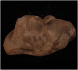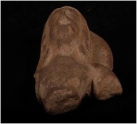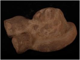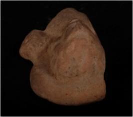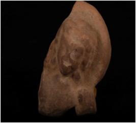 | Description / विवरण | A head of a male figurine with a circular halo rising from shoulders, curly hair on top falling in locks, wering earings and necklace, well levigated clay, well baked, surface treated with buff wash. |