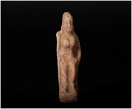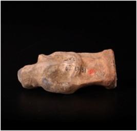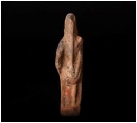 | Description / विवरण | Fragment of part of female figurine having circular breast and Left hand on waist with incised eyes. Surface dull red in colour. |