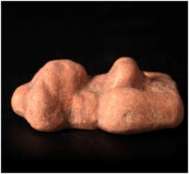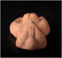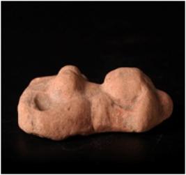| Description / विवरण | Terracotta female figurine with prominent head dress with circular breast and incised work on forehead and eye, well levigated, well baked. |