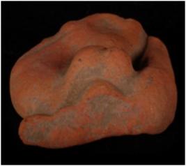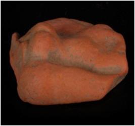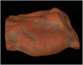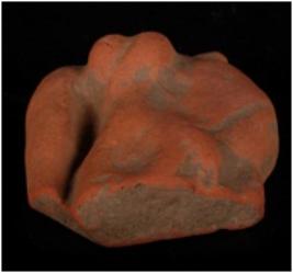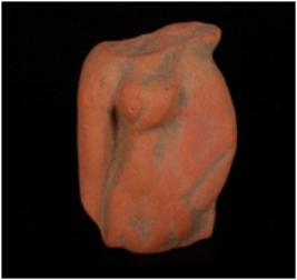 | Description / विवरण | Terracotta fragment of female figurine on plaque with prominent circular breast, left hand is missing, red in colour, well levigated. |