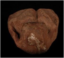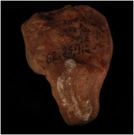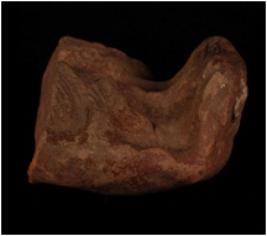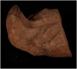 | Description / विवरण | Terracotta fragment of a standing human figurine with prominent incised work on foot red in colour, well levigated, well fired. |