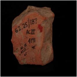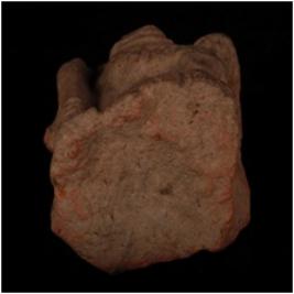 | Description / विवरण | Terracotta fragment of a figurine with prominent groove lines on all body parts, well levigated, red in colour. |