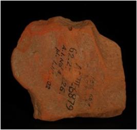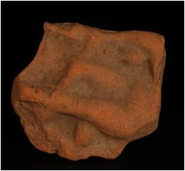 | Description / विवरण | A fragment of a terracotta plaque showing a nude woman figurine standing with body turned towards her right side, left leg is straight and right leg bend on the knee. Made with well levigated clay and given a wash treatment in red colour. |