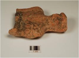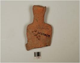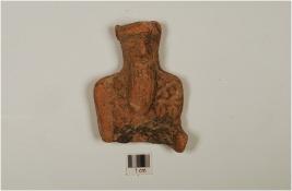 | Description / विवरण | A male bust with prominent face,incised eyes,pointed nose wearing turban having large beared one hand raised other hand is broken,treated with red slip on the surface. |