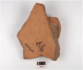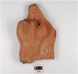 | Description / विवरण | Fragment of an indeterminate object, probably of a human figure of fine fabric and inadequately baked and treated with red slip. |