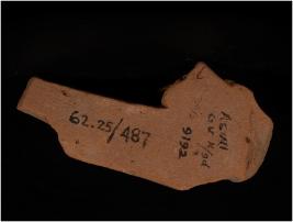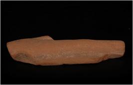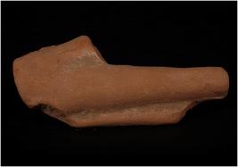 | Description / विवरण | Terracotta plaque human leg of standing human figurine. Upper part and left leg are missing. Right leg is partly broken. |
