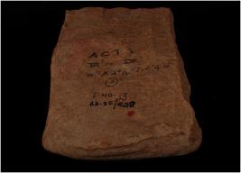 | Description / विवरण | Terracotta plaque lower portion of a standing human figurine. Standing on pedestal, drappery is suggested by incised line, pointed legs, feet are visible. |