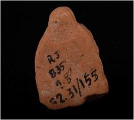 | Description / विवरण | A Terracotta male head with prominent nose, coiffure on head dress. |