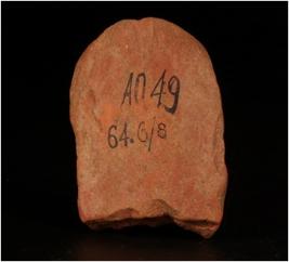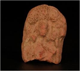 | Description / विवरण | Fragment of female figurine on plaque. Facial features are not clear. The top portion of the plaque is decorated with a floral and foliage design. It was broken at the bottom. |