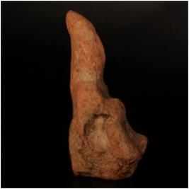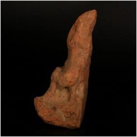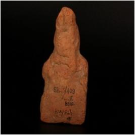 | Description / विवरण | Terracotta plaque of male figurine, seated on pedestal, defaced features, cruded and buff in colour. |