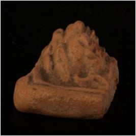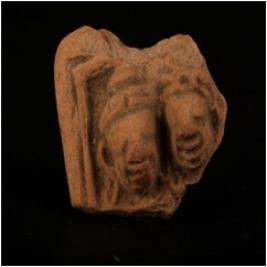 | Description / विवरण | Terracotta plaque of dampati head with decorated headdress. Defaced feature, torso is missing and buff in colour. |