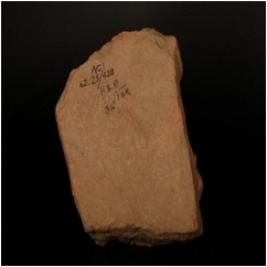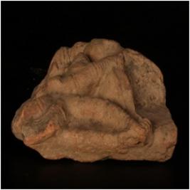 | Description / विवरण | Terracotta plaque which is dipiching the story of mahashasur mardini. Wearing headdress, hair and three hands are visible. Grooved bangles are visible in hands. Buff in colour. |