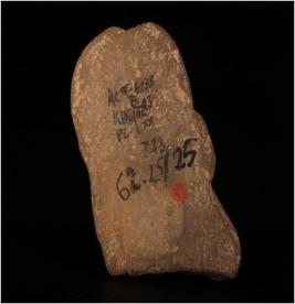 | Description / विवरण | A terracotta plaque depicting sati-salla on plaque, defaced, lower portion missing, made with well levigated clay and given a slip treatment in a buff colour. |