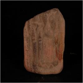 | Description / विवरण | Terracotta fragment of satti satta on plaque, lower portion is intact, upper portion is missing. Hands are holding garland and slender legs. |