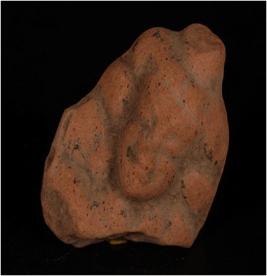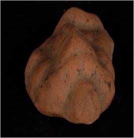 | Description / विवरण | Terracotta male head, stylized hairs with unfinished perforation, plaque object and lower portion is missing. |