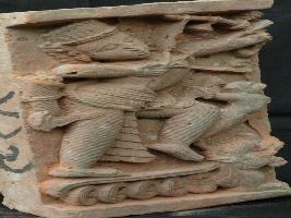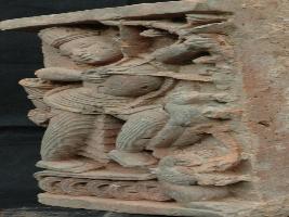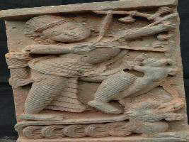 | Description / विवरण | The plaque depicts a scene from Ramayana , is featuring Rama in fighting posture, holding bow and arrow by both the hands and wearing Dhoti , headdress, elongated earrings and garland.Hanumana is standing in front of him. |